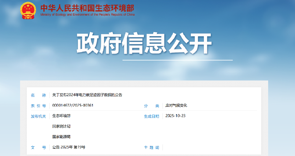 生態(tài)環(huán)境部 關(guān)于發(fā)布2024年電力碳足跡因子數(shù)據(jù)的公告